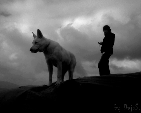 Whitee a Anička, na balících slámy, nad Sychrovem...