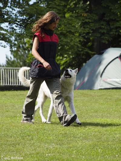 S poslušností jsme začaly když bylo Whitee asi 5 měsíců, to jsme začaly chodit na cvičák, kam chodíme doteď. Whitee to jde a občas jí to aj baví, ale nesmíme cvičit moc dlouho, neumí se moc dlouho soustředit :D pak začne vymýšlet blbiny :D máme nějaké ty zkoušky a chtěla bych to dotáhnout ještě na další, no uvidíme jak se nám bude dařit ;)